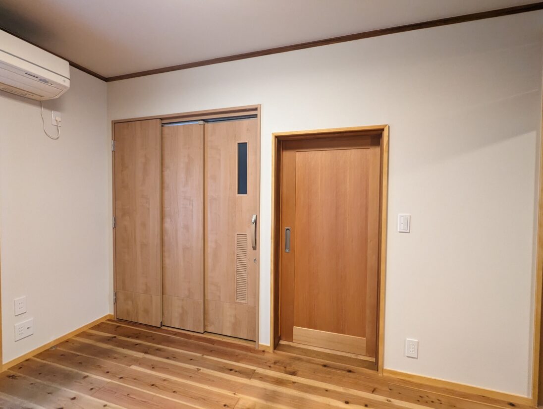 構造上、既存のトイレを広げることができませんでしたので、寝室に隣接する押入をトイレスペースにすることを提案致しました。